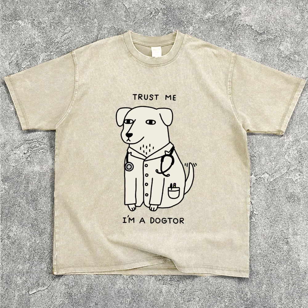 Unisex Unisex TRUST ME I'M A DOGTOR Washed Oversize T-Shirt