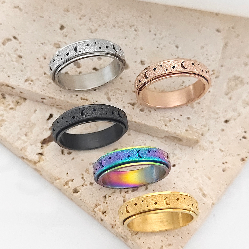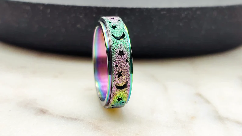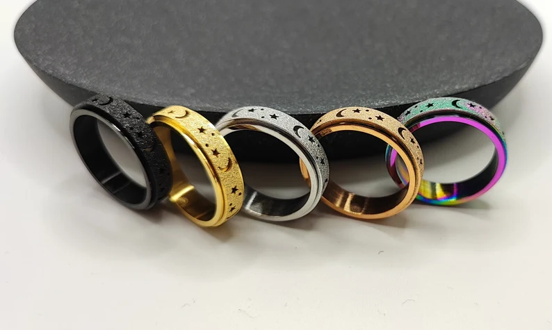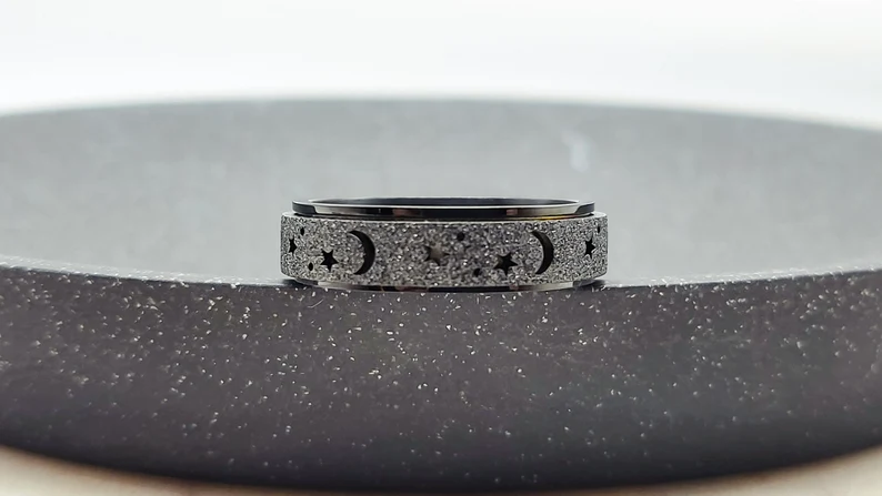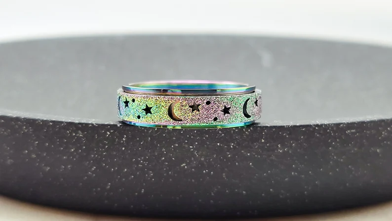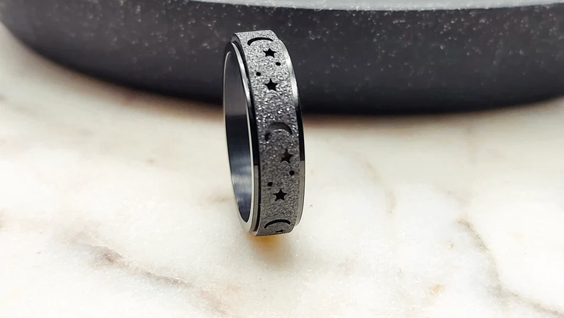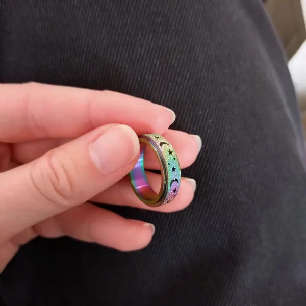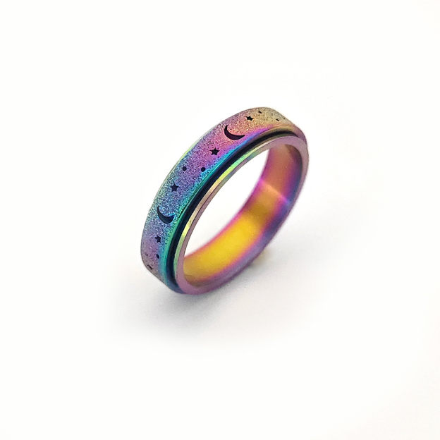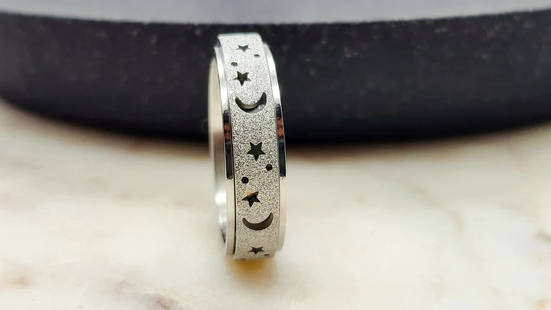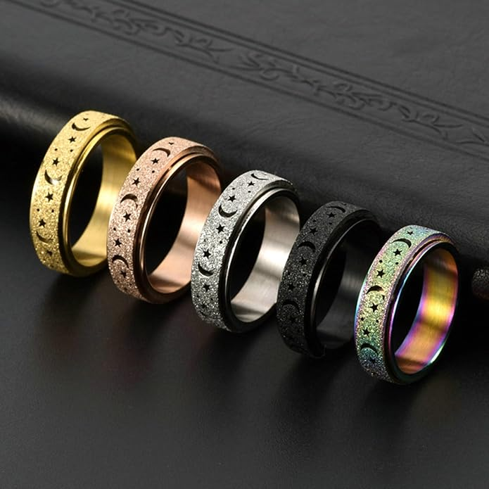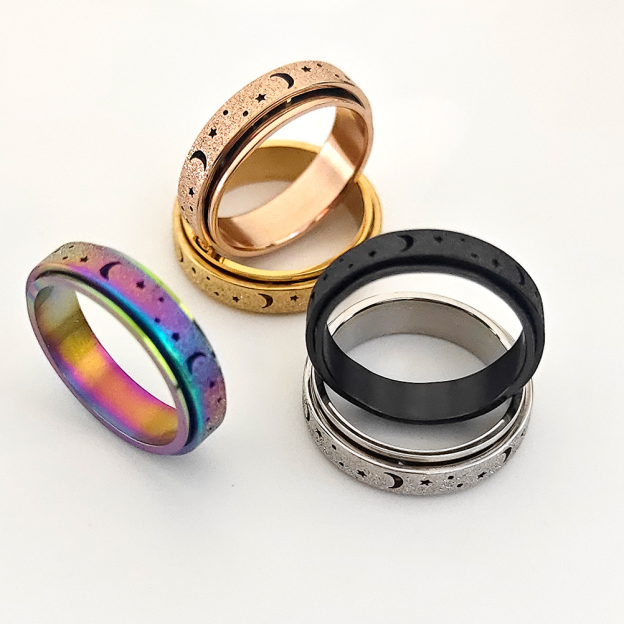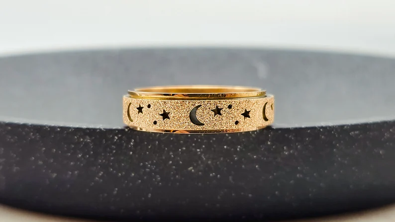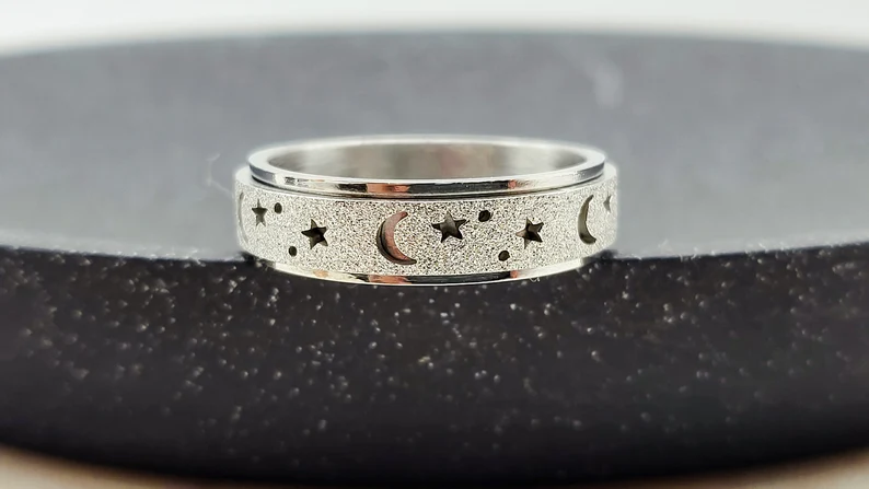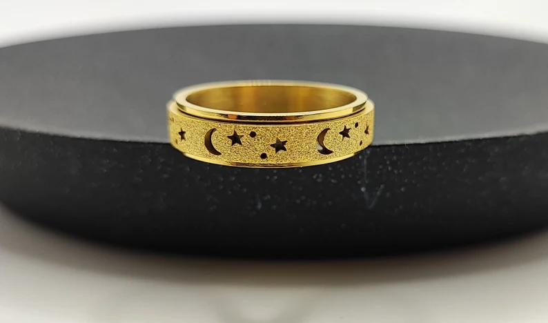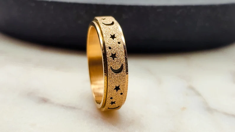 Unique Spinning Moon + Star Anxiety Ring for Men and Women