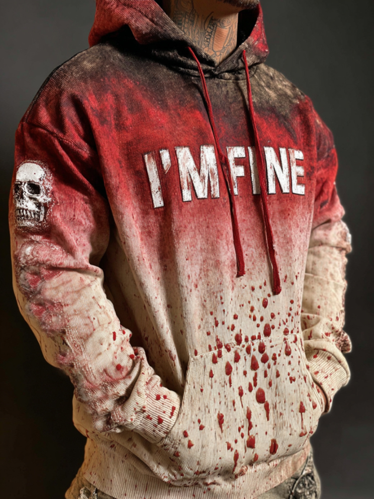 Unisex Vintage Bloody "i Am Fine" Hoodie