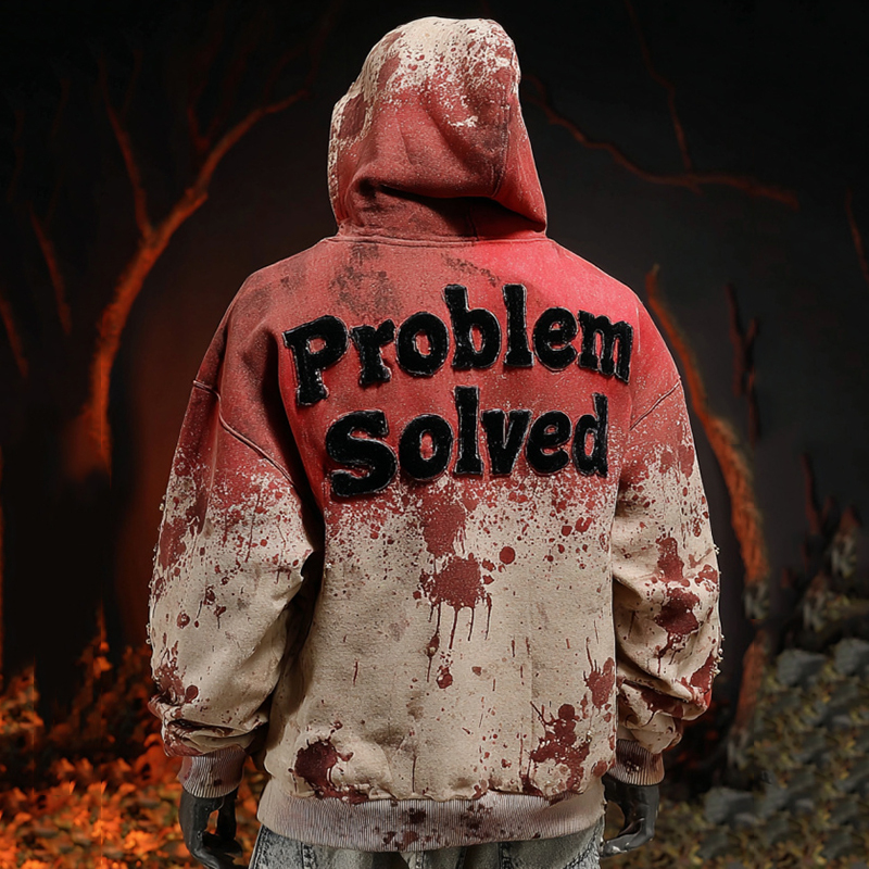 Unisex Vintage Bloody "problem Solved" Hoodie
