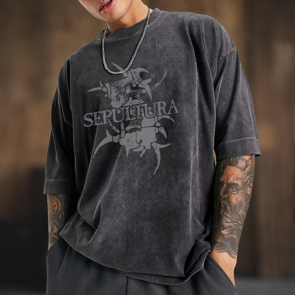 Unisex Vintage Washed Sepultura Heavy Metal Band T-shirt