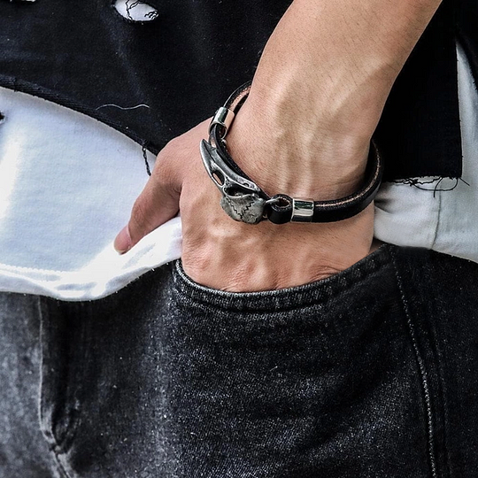 This leather Viking bracelet features a unique raven skull design that stands out. The symbol of the raven is commonly associated with Odin, the Norse god of wisdom, and is often used to symbolize the power and authority of the gods. The skull is carefully crafted from high quality materials to ensure its durability and longevity.Not only is this bracelet beautifully designed, it is also well made and meets the highest quality standards. The leather is sourced from premium suppliers, ensuring that it is soft and supple, yet strong and durable. The raven skull is