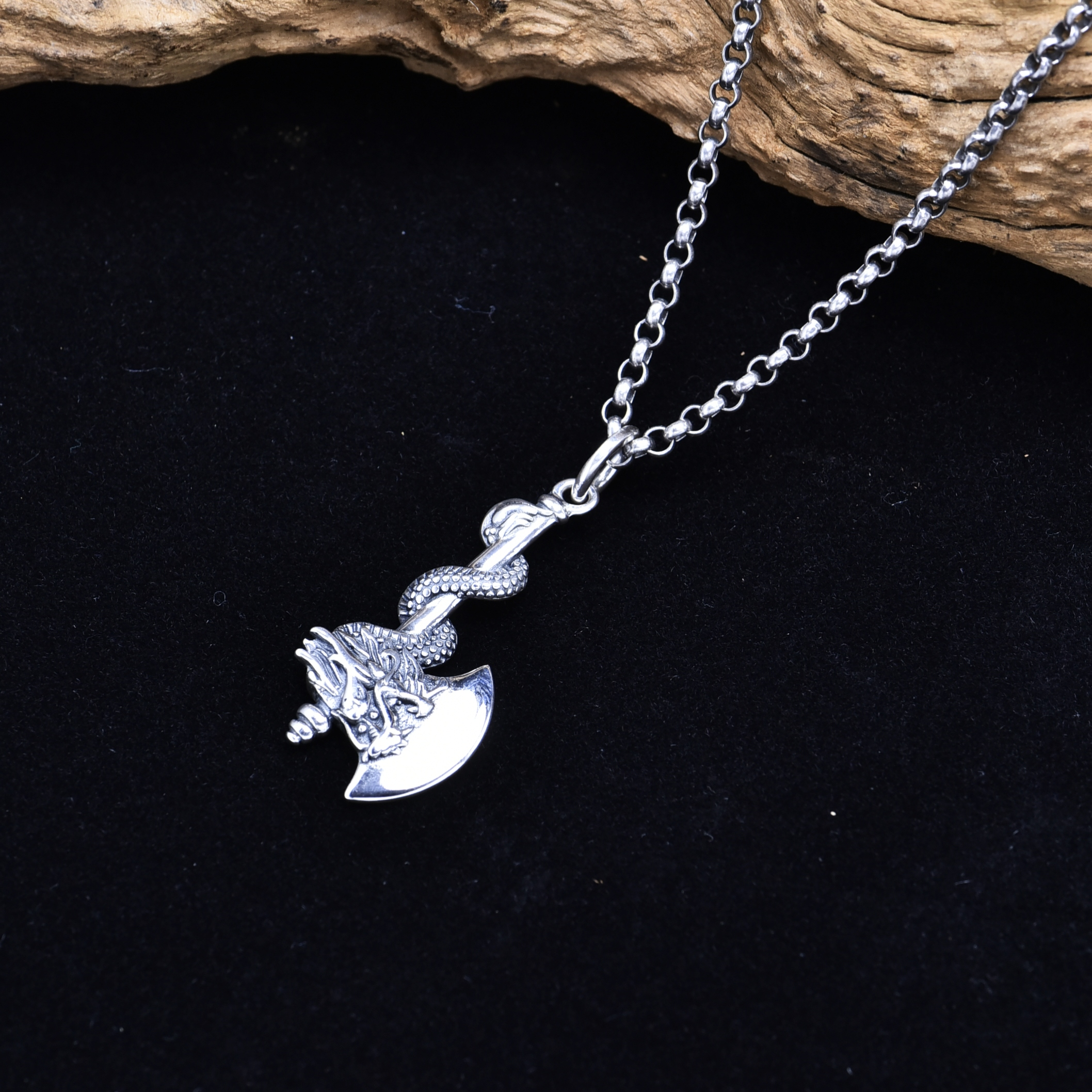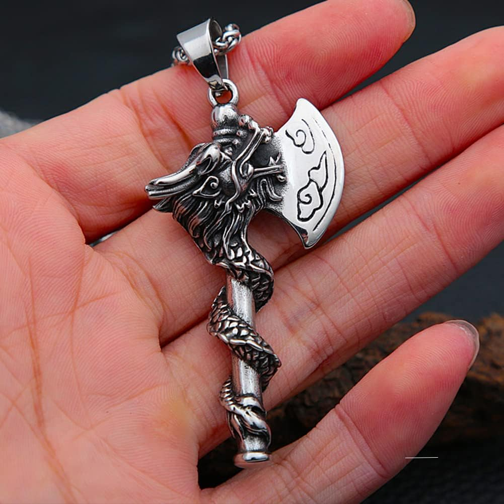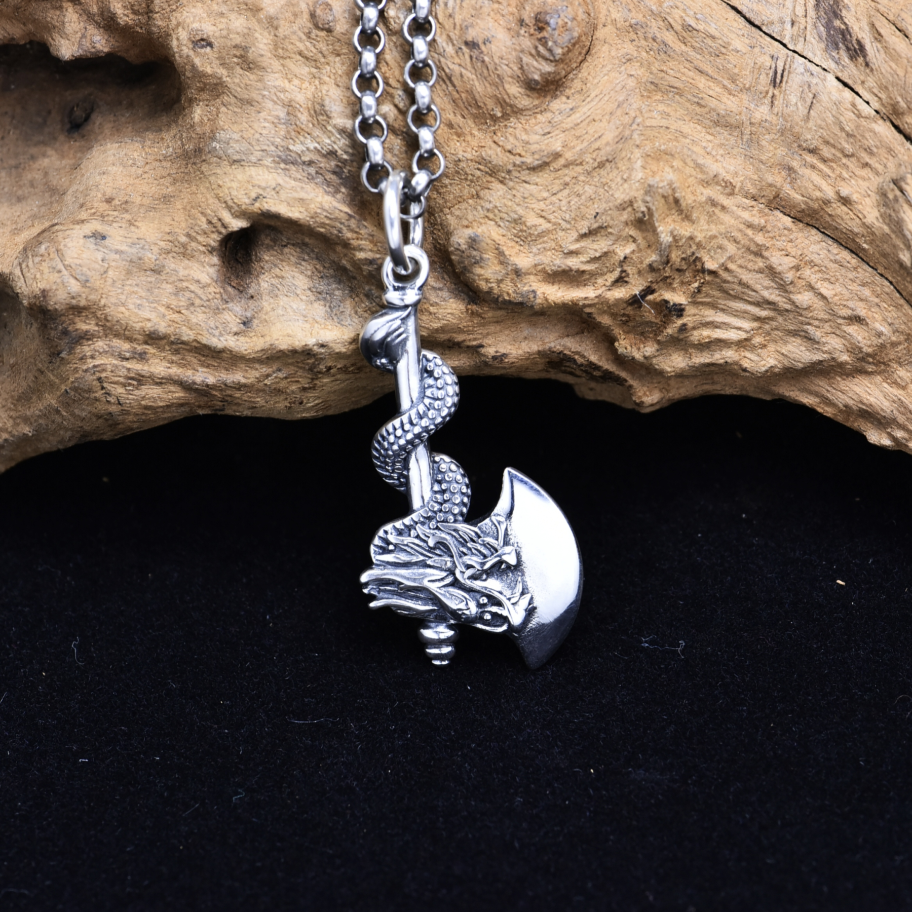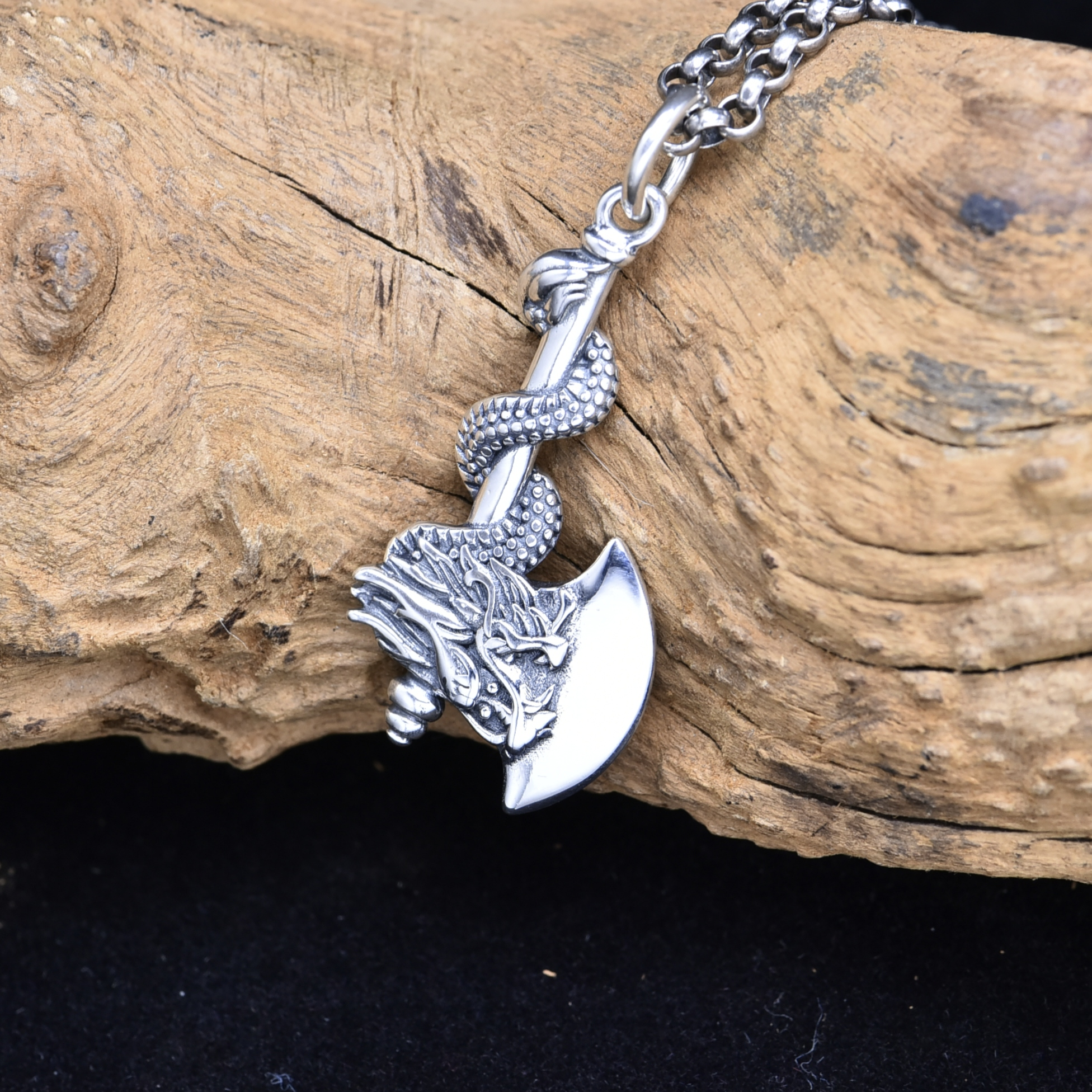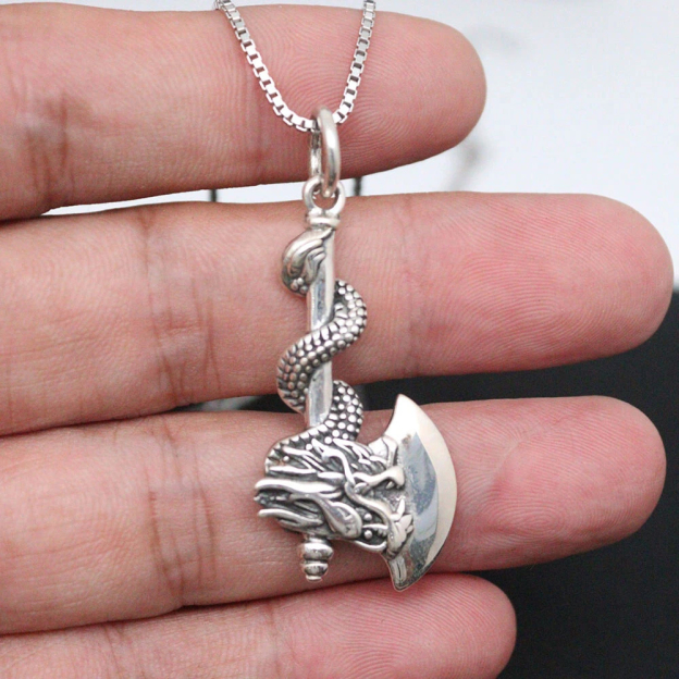 This 925 sterling silver dragon - headed axe necklace is crafted with extremely exquisite casting techniques. Skilled craftsmen meticulously shape the pure silver. From the lifelike scale textures of the dragon head to the smooth curvature of the axe blade, every detail is carefully carved. Through the lost - wax casting method, every detail of the design is accurately reproduced, making the eyes of the dragon head sharp and majestic, and the winding patterns on the axe handle delicate and realistic. Every touch allows you to feel the warmth and texture of the craftsmanship.