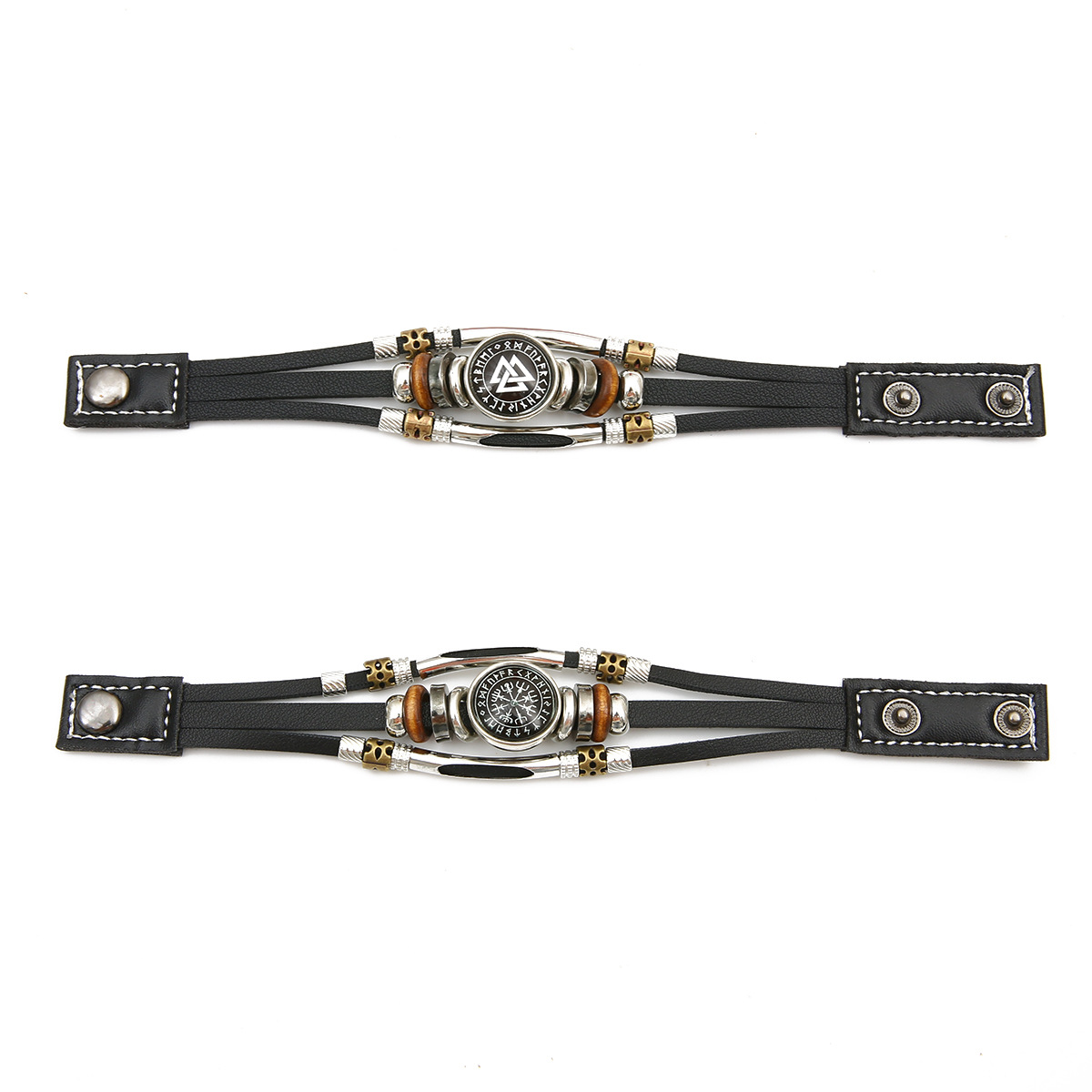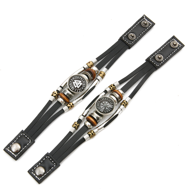 Viking Pirate Compass Pattern Leather Bracelet