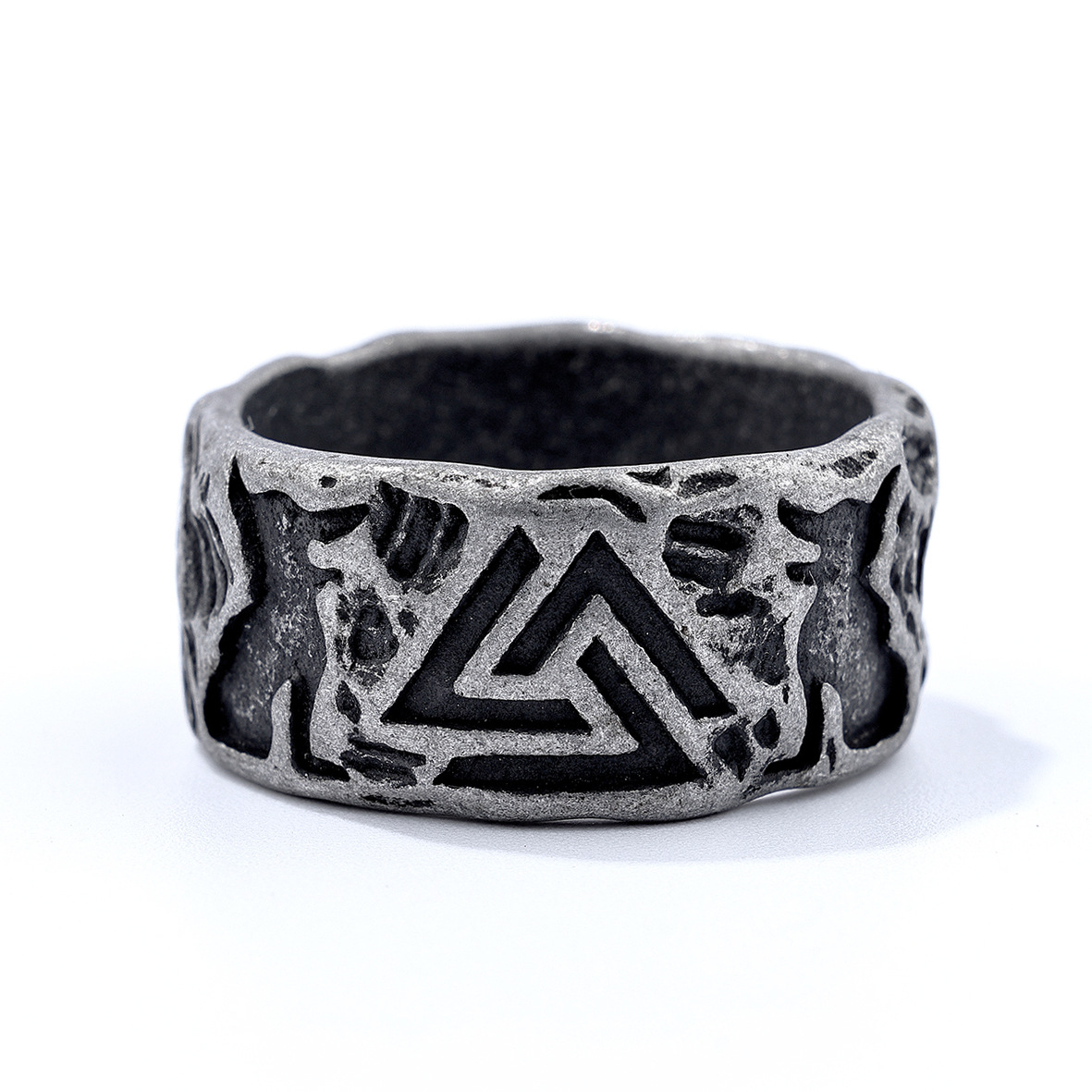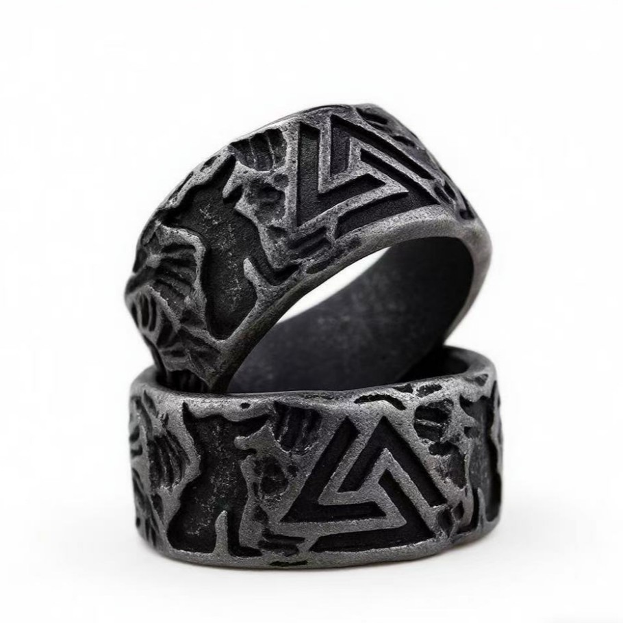 - Rune Matrix: The ring face is engraved with Valknut (triangular knot), wolf silhouettes, and battle - axe patterns. Each indentation seems copied from ancient Viking stone carvings. In bright light, it glows like “the reflection of a battle spear”; in dimness, it hides the “mystery of a long - night campfire.” Wearing it, your fingertip becomes a “story launcher.”