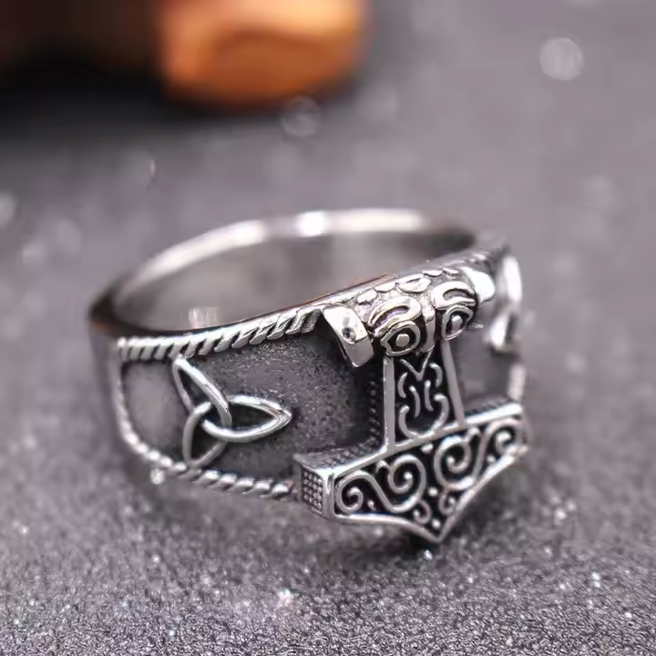 - Combined with Celtic Knots and Other Elements: The ring also incorporates elements of Viking culture such as Celtic knots. The Celtic knot symbolizes eternity and connection, echoing with the Thor's hammer element, enriching the cultural connotations of the ring and making the overall design more layered and unique.