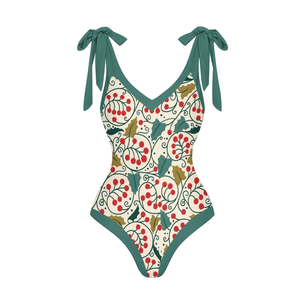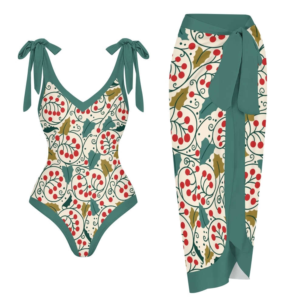 Christmas Vine Pattern Women's Printed One Piece Swimsuits and Cover Ups