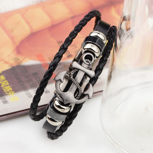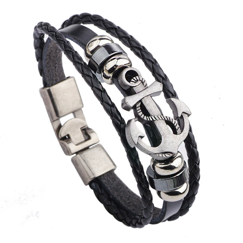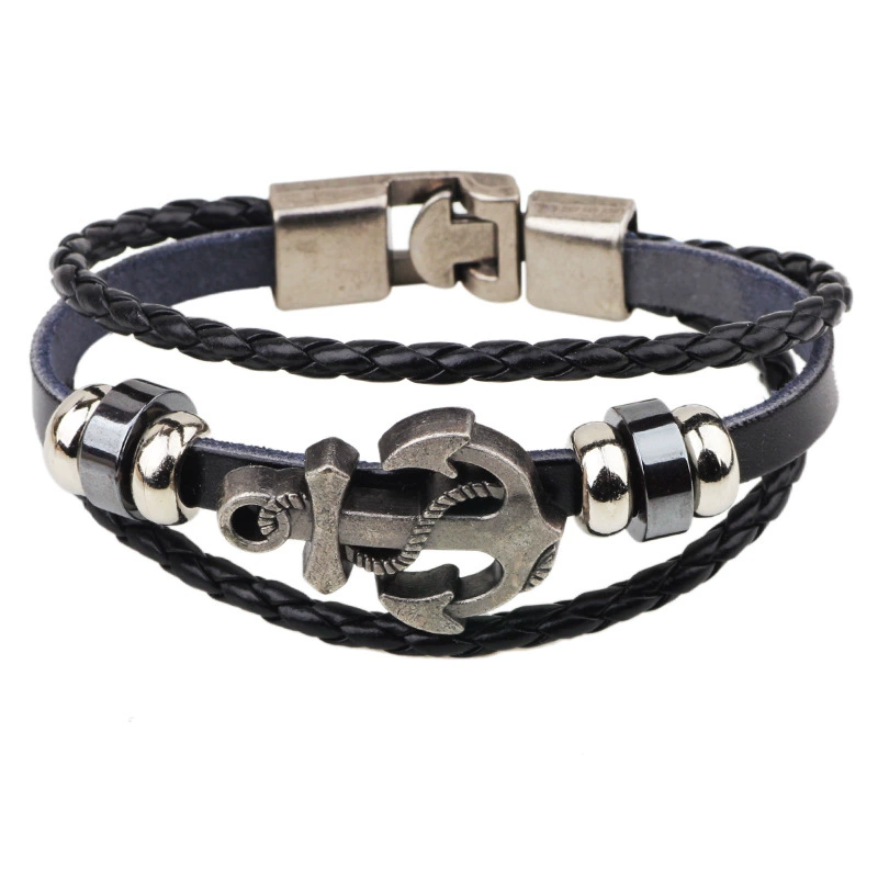 Vintage Anchor Multi - layer Braided Versatile Cowhide Leather Bracelet