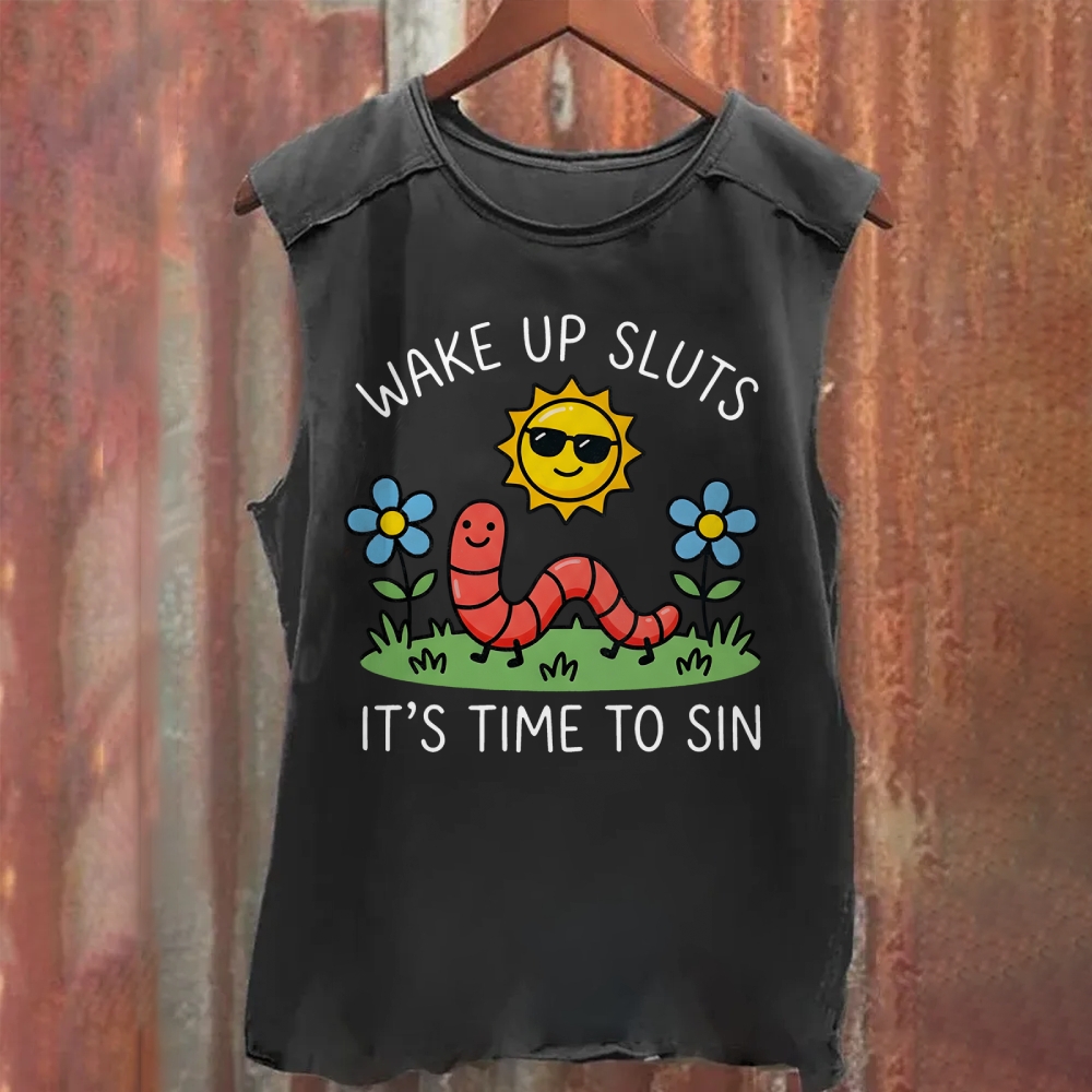 WAKE UP SLUTS IT'S TIME TO SIN Washed Tank Top